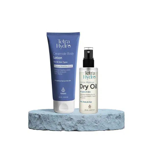 • مجموعة زيت الجسم الجاف + لوشن السيراميد للجسم